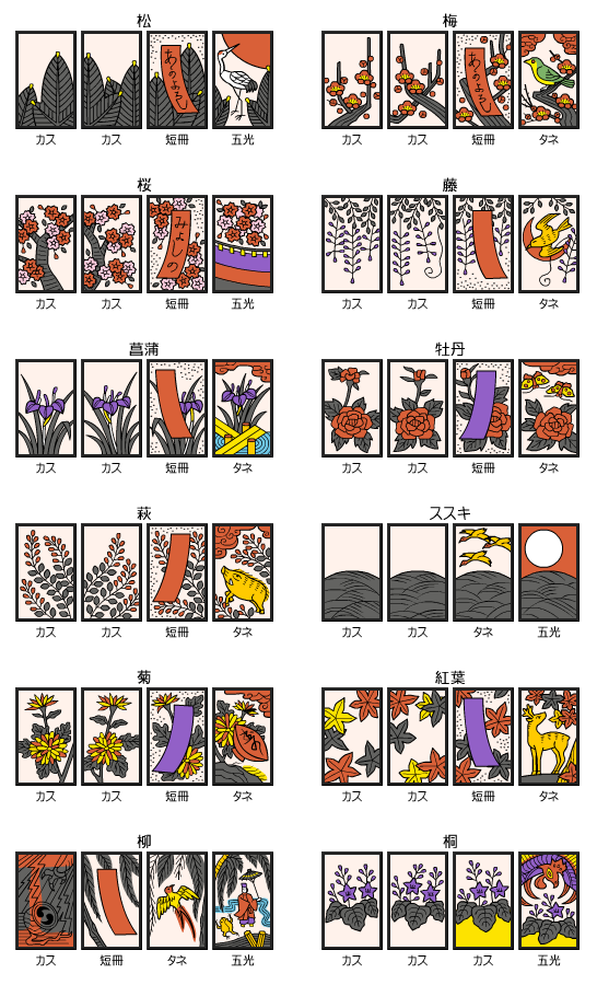 | 短冊(1文) 短冊を5枚集めた役。以後1枚増える毎に1文加算。 | ![]() |